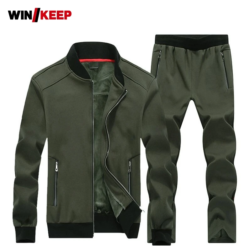 Sport Suits Men Sportswear Sets Warm Gym Clothes Fleece Fabric Male Winter Tracksuit Running Joggin