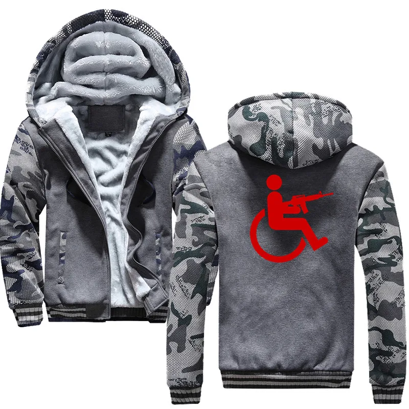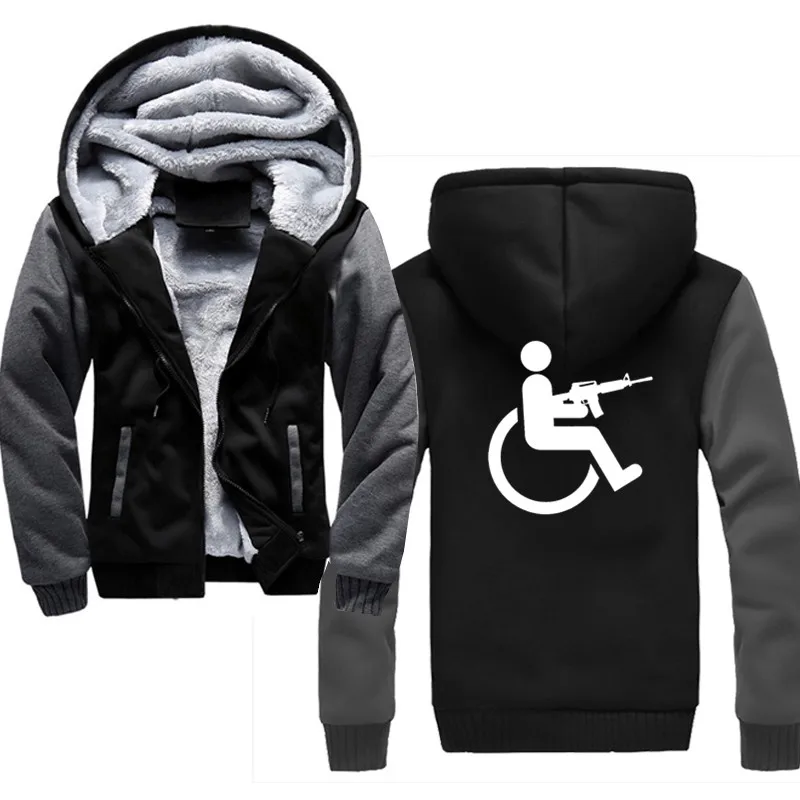 Handicapped Wheelchair Gun men sweatshirts autumn winter fleece print fashion casual men's sportswe