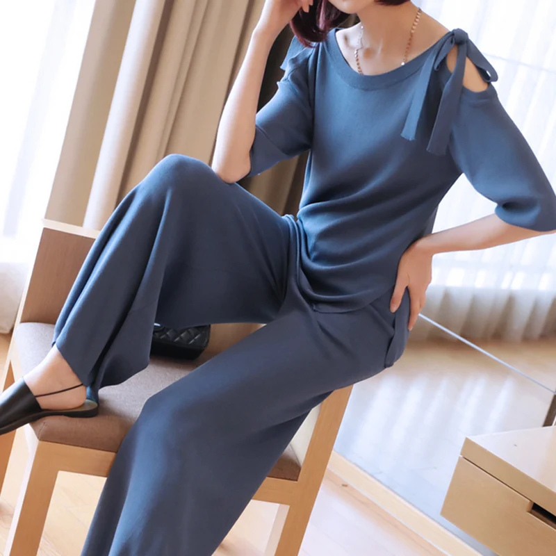 HOT SALE 2018 Autumn Casual Knitted strapless Tracksuit set Women Solid 2 Piece set Sportswear Top Fashion S