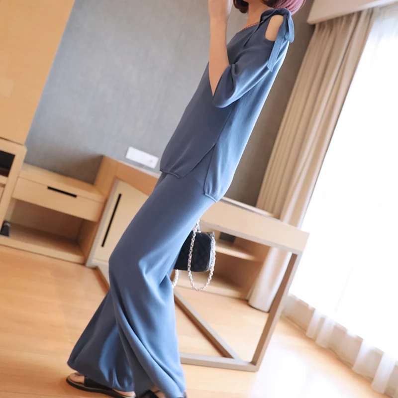 Review 2018 Autumn Casual Knitted strapless Tracksuit set Women Solid 2 Piece set Sportswear Top Fashion S