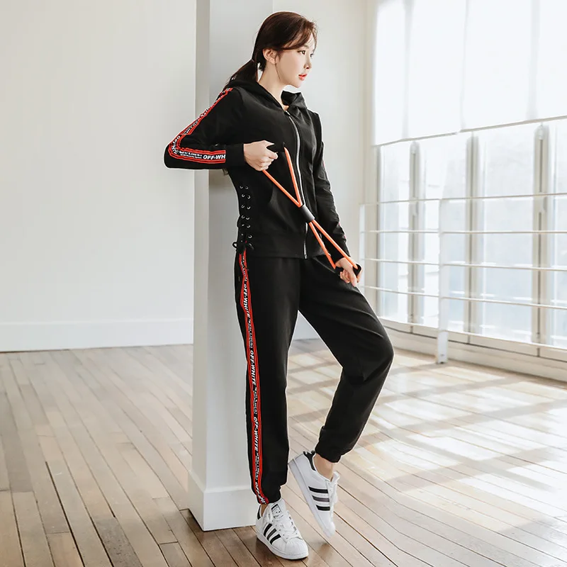 TOP 2 piece set women's tracksuits coats and pants 2020 Spring lace-up prints sportswear suits set ladi