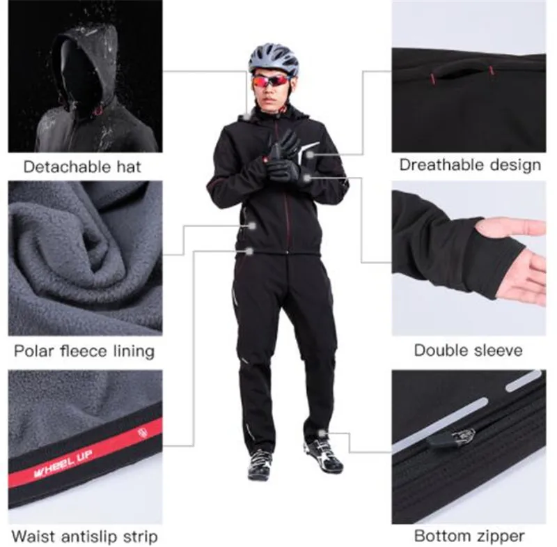 Review Top WHEEL UP Cycling Jersey Winter Thermal Fleece Cycling Clothing Windproof Waterproof Bicycle Reflect